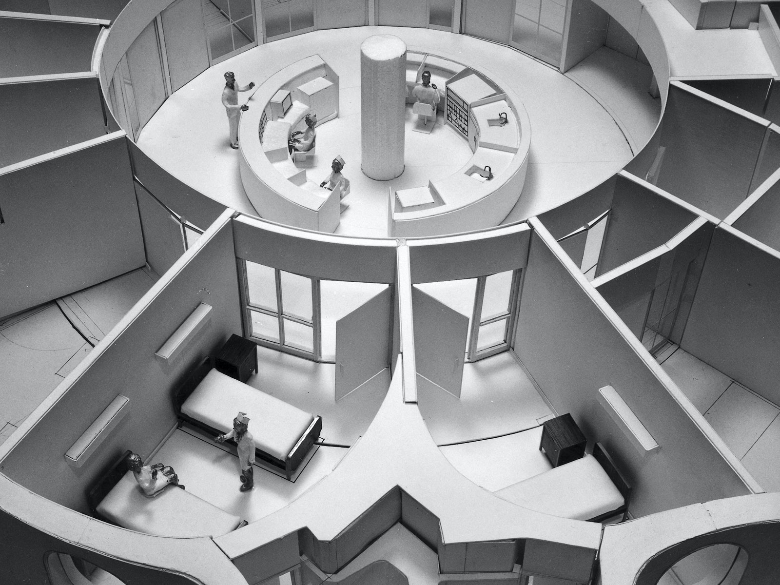 Architect Bertrand Goldberg was born in 1913 in Chicago, Illinois. He went to Harvard and then the Bauhaus in Berlin from 1932-33. He organized his own firm in 1937 after working in the offices of George Fred Keck (1935) and Paul Schweiker (1935-36). During his career, his unique design philosophy and innovative use of technology were acknowledged through numerous awards and exhibitions in the United States and Europe. Goldberg died in Chicago in 1997.
